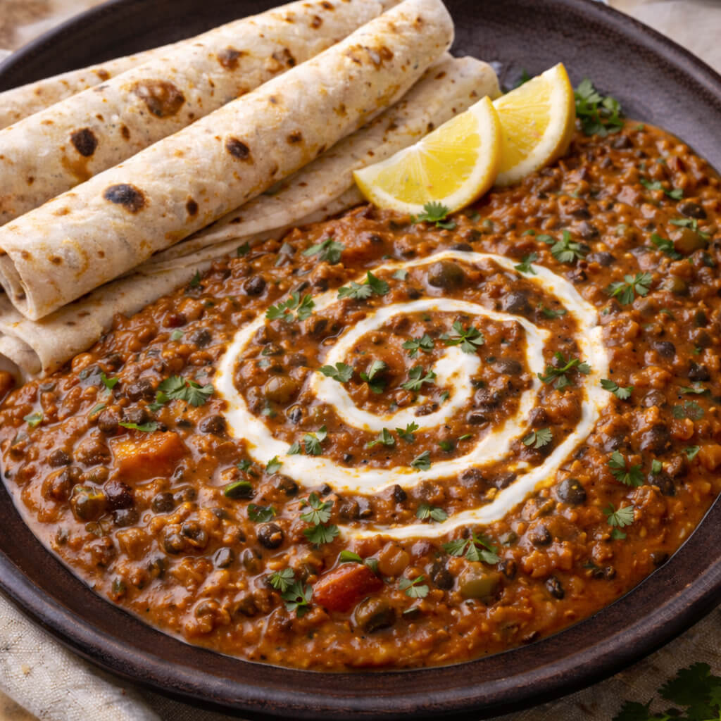 Dal Makhni is a rich and indulgent North Indian classic, celebrated for its slow-cooked depth and creamy texture. Whole black lentils and red kidney beans are gently simmered for hours with butter, cream, tomatoes, and aromatic spices, allowing the flavours to develop fully. This slow-cooking process gives the dal its signature velvety consistency and deep, smoky richness.